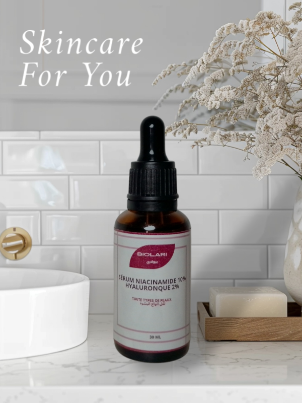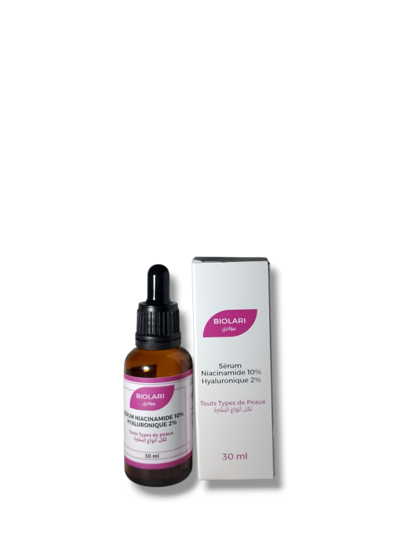 سيروم نيانسينميد وحمض الهياليورونيك الدي يزيل البقع الداكنة ويوحد لون البشرة ويحافظ على ترطيبها ونضارتها ويزيل الشواءب ويشد المسام ويزيل أتار حب الشباب والاحمرار